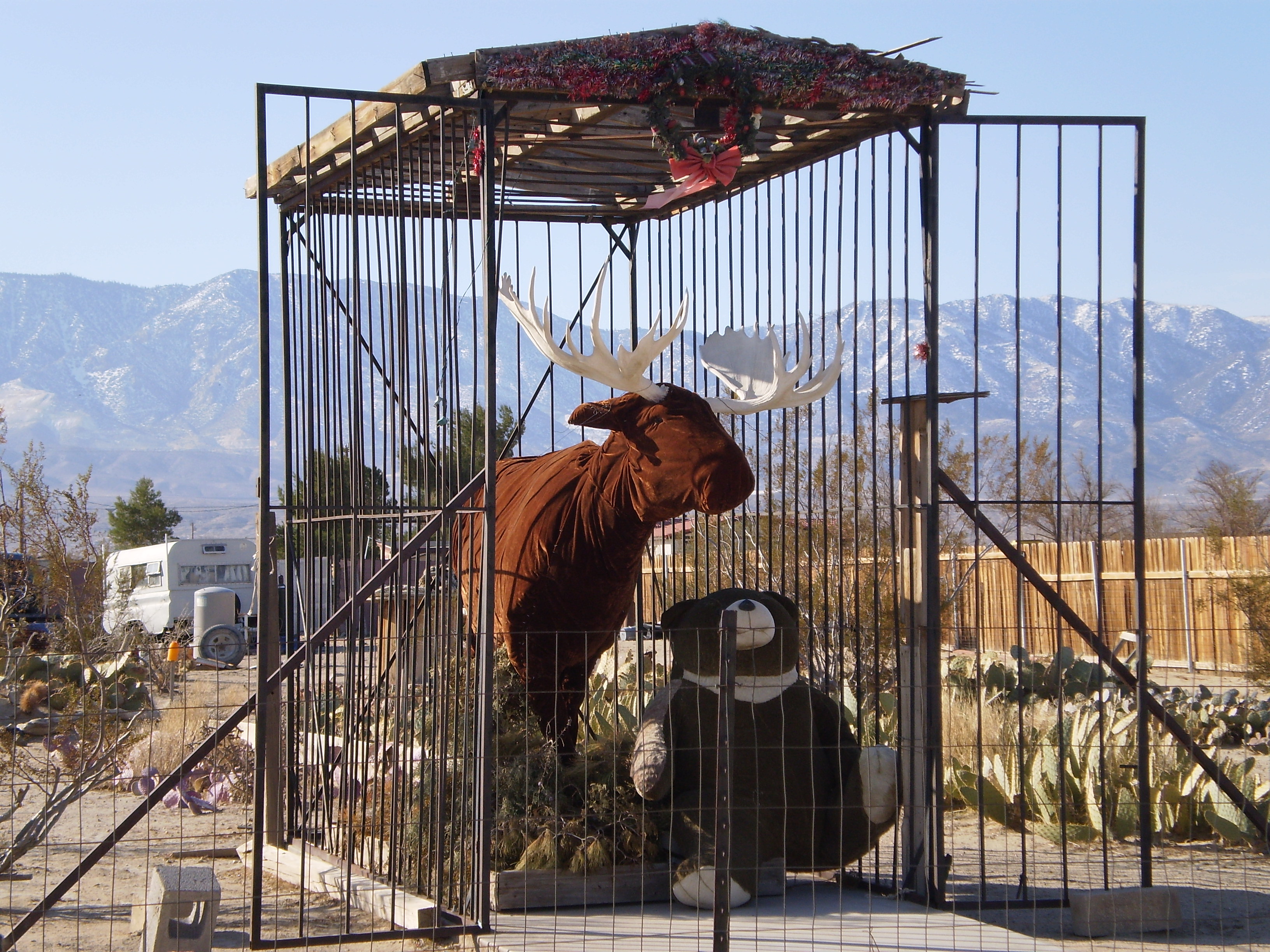 Here is a stuffed moose located on Hwy 247 in Lucerne Valley, CA. The coat of this moose has seen better days but it is out here in the desert 24/7. I couldn’t find any information on this moose as to how he came about or what his story is all about.