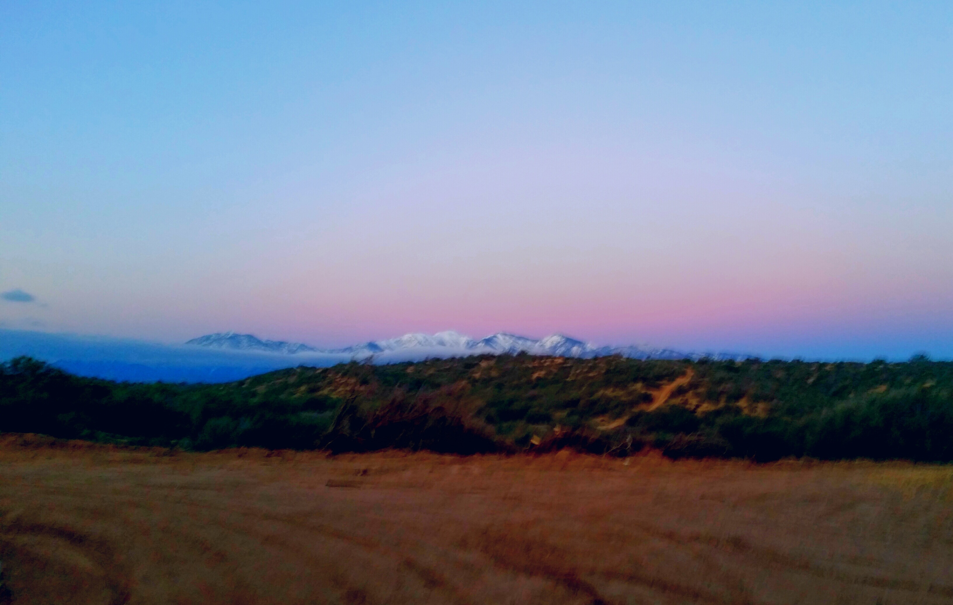 Today’s challenge is to take a picture from your front door. Luckily for us, our front door has an amazing view. Especially at sunrise and sunset. Our front door face southwest to overlook the Cajon Pass and the San Gabriel Mountain range which host Mountain High ski resort and Angeles Crest Scenic Byway (Hwy 2). This highway is a haven for motorcycle riders with lots of twisting mountain roads, sweeping curves and switchbacks. After the ride, then you can rest at Newcomb’s Ranch which serves great food, weekend bbq and lots of classic and new bikes to view in the lot. A very congenial atmosphere and beyond biker-friendly. Our favorite road to travel during the summer.