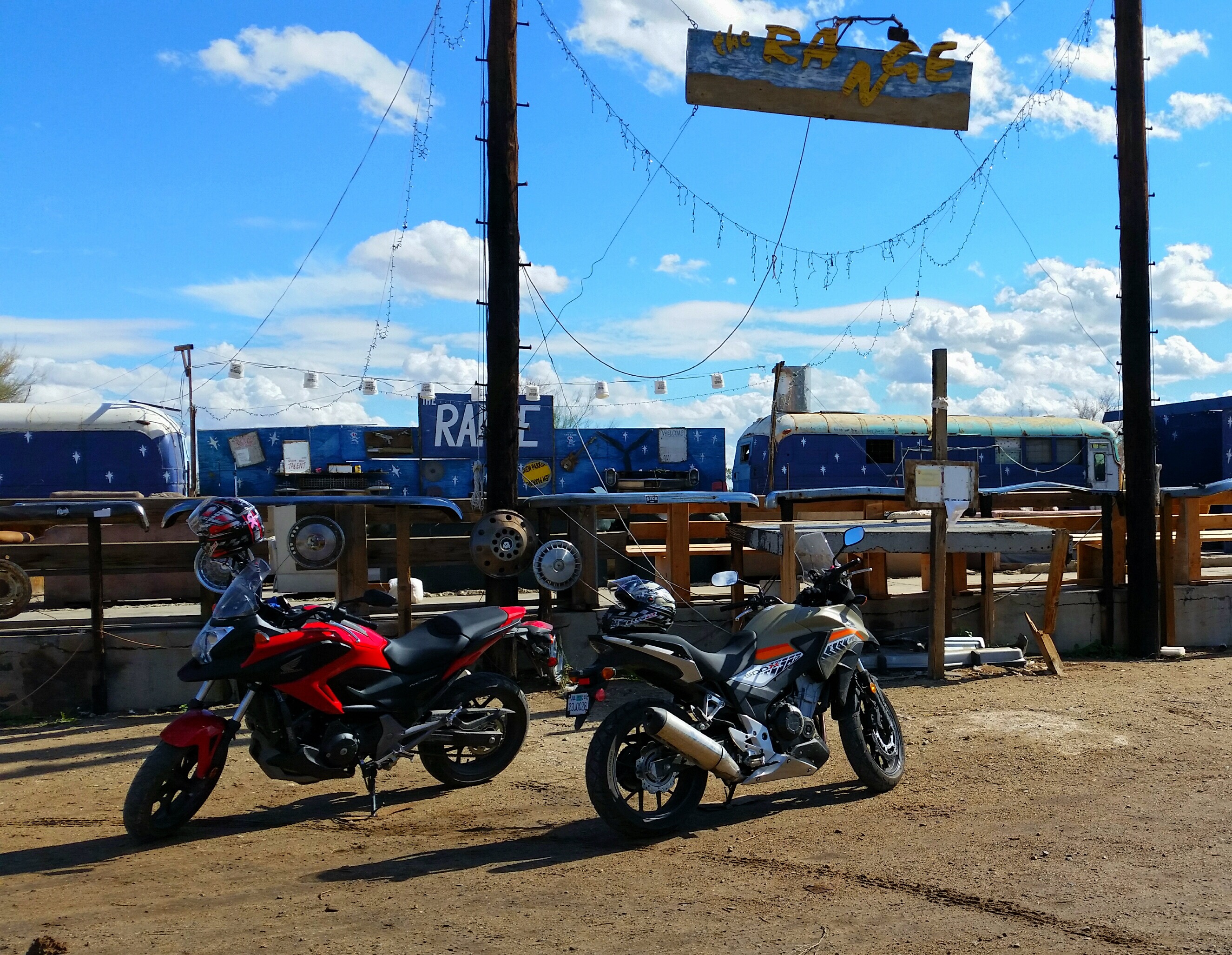 Mark and I has planned a get away for President’s Day weekend. After the storm, we had been tasked to clean up the damage. So, we weren’t sure that we would be able to get away like we hoped. On Saturday morning, we got up early and tackled dismantling the mangled horse shelter. Once we were done, we looked at each other and knew that we’re going to on our mini get away. So, we quickly got cleaned up, packed and jump onto the bike to head out to Desert Hot Springs.