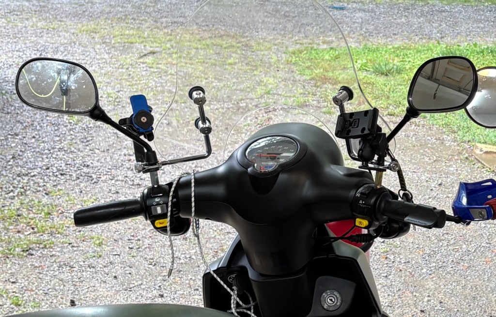Well, not quite. Before even attaching the Quadlock to the mirror stem, I had a revelation: the stock mirrors were tiny, round, and offered terrible rear visibility. Safety first! After a bit of hunting, I found some aftermarket mirrors designed for a Yamaha C3 that provided a much better view of what’s behind me. Another addition was a windshield, as the Genuine Buddy didn’t come with one. I opted for a shorter version. As odd it sound, I actually enjoy the wind on my face when my helmet shield is up.