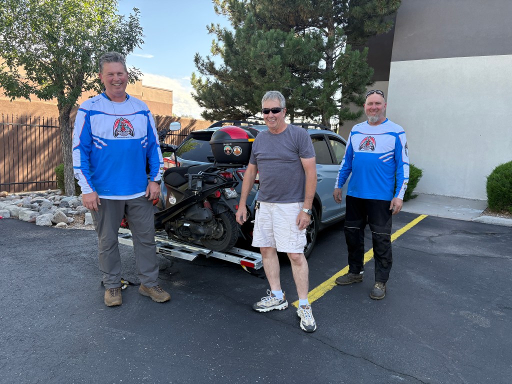 We reached our bonus point, snapping our obligatory evidence photos with timestamps. Even though it’s not a race, it’s still a timed event, after all. The three of us were in such a state of euphoria that we finally took a moment to capture ourselves together – the first group photo in four days! How could the day possibly get any better? In that moment, surrounded by stunning natural beauty and good company, I truly believed I might just survive the eight days of 10-12 hour rides, covering over 500 miles daily. Most of the time, our stops were strictly for photos, a swig of water, a granola bar, and a quick bio break. It was a far cry from my usual motorcycle rides, where I’d chase every “shiny” detour.